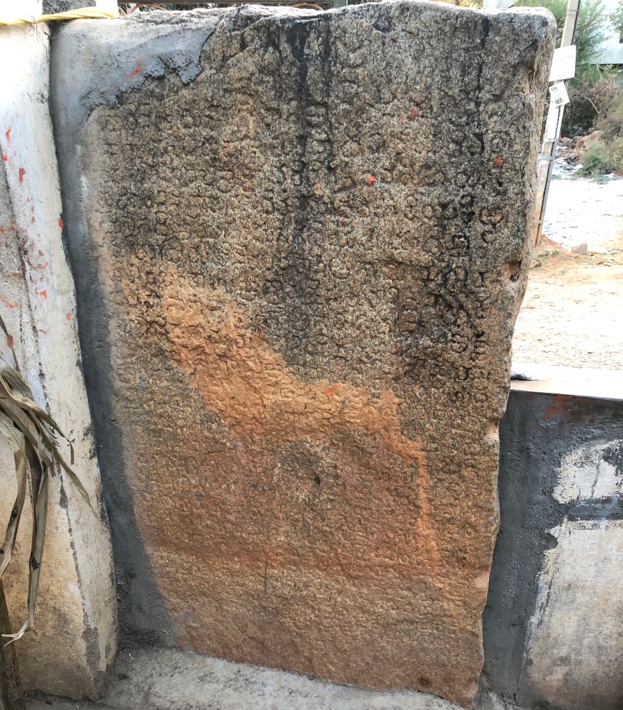 The inscription was found in the Anjaneya Temple in Kodigehalli. The temple priest gave an interesting piece of information; the video has been uploaded on instagram. As mentioned in the post, most of the information given by the priest is either incorrect or unverified. However, he said that the idol was installed by Vyasatirtha, during the reign of Krishnadevaraya. We have no evidence to prove this, however the possibility may not be denied as Vyasatirtha from the Madhwa math was the preceptor or spiritual adviser to Krishnadevaraya. This throws light into another important feature of this era; the patronage received by the monasteries or mathas. The role played by these mathas and especially the Madhwa math under Vyasatirtha in Vijayanagara has been explained in detail by Valerie Stoker in his book Polemics and Patronage in the City of Victory.